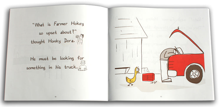 In this book Honky Dora has a very exciting day and her loud honk saves farmer Hokey's day.