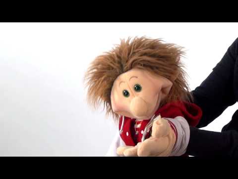 The puppeteer (whether child or adult) inserts one hand through the opening in the back of the puppet’s head ( however their heads are also full of wadding and self supporting, as is the body and legs). By using the movable mouth it is easy to create loads of funny facial expressions and mimics.